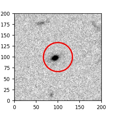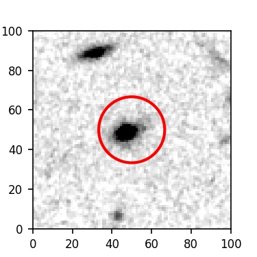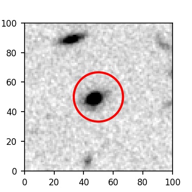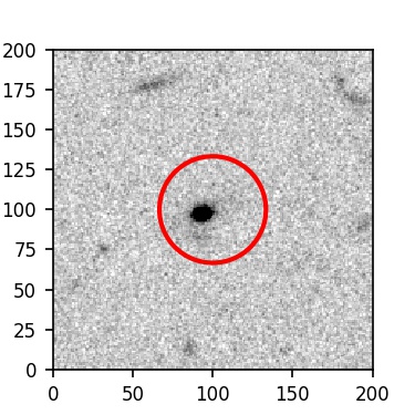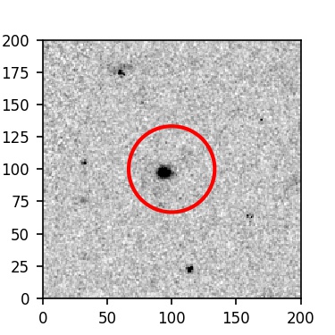 The red circle in the various panels is 1" in radius. The images are 6"x6".
