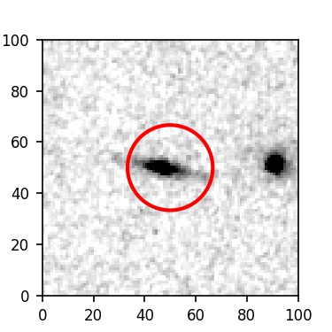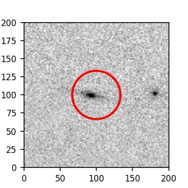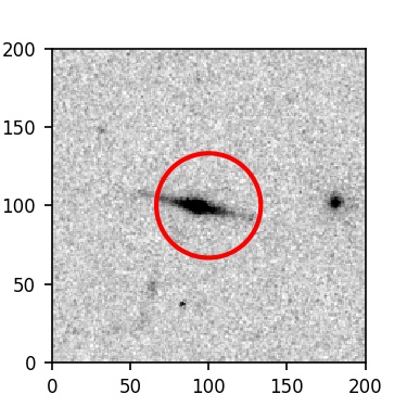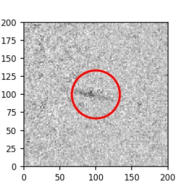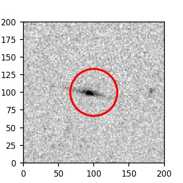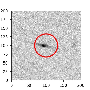 The red circle in the various panels is 1" in radius. The images are 6"x6".