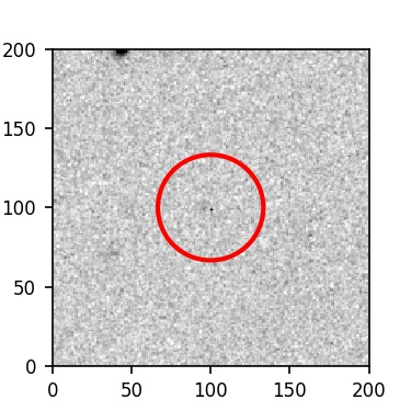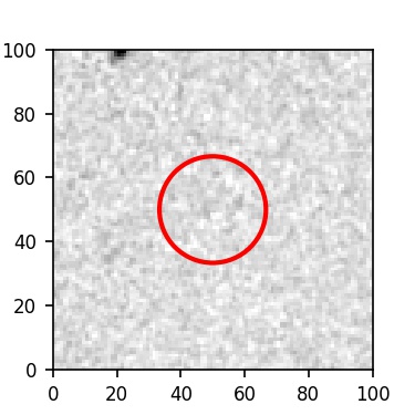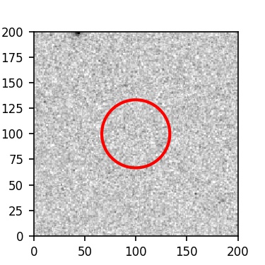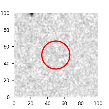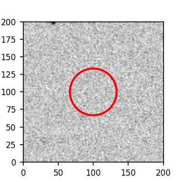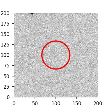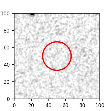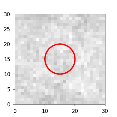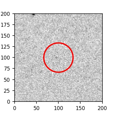 The red circle in the various panels is 1" in radius. The images are 6"x6".