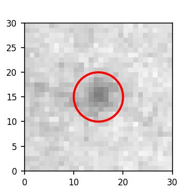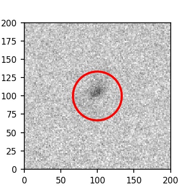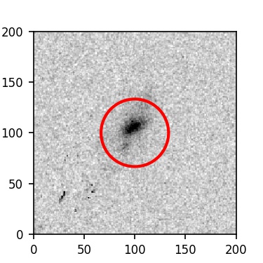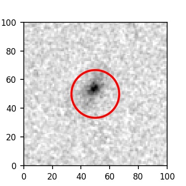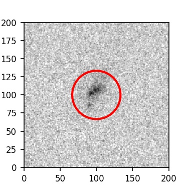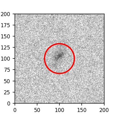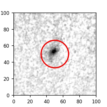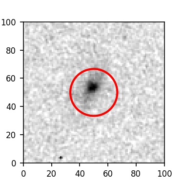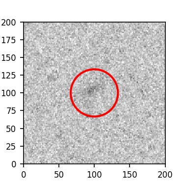 The red circle in the various panels is 1" in radius. The images are 6"x6".