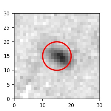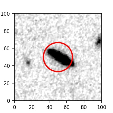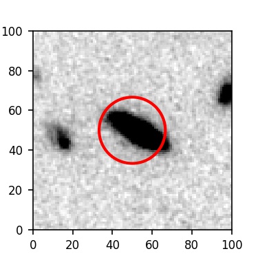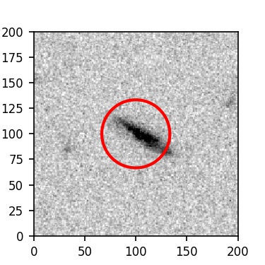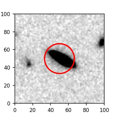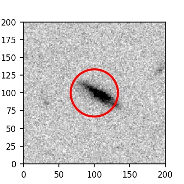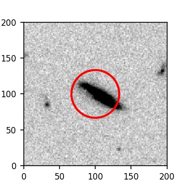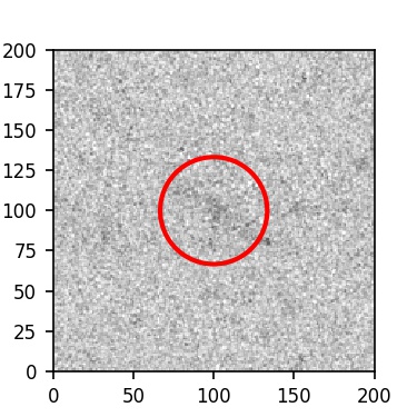 The red circle in the various panels is 1" in radius. The images are 6"x6".