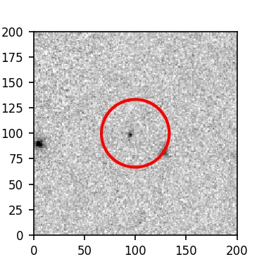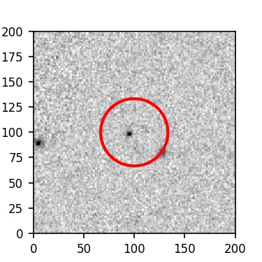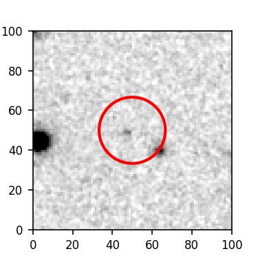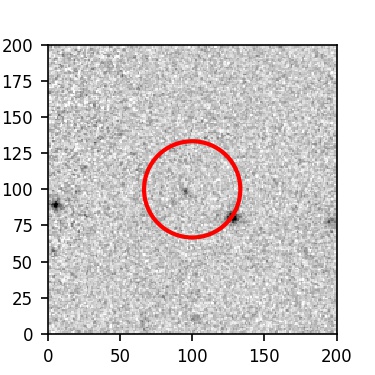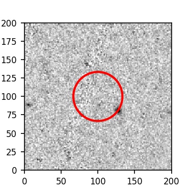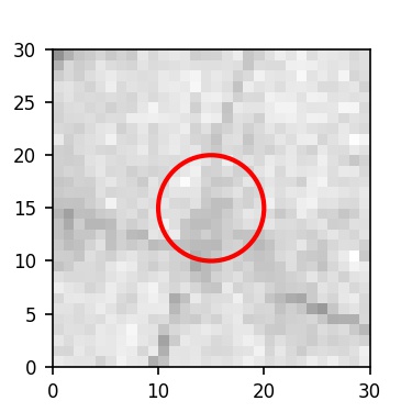 The red circle in the various panels is 1" in radius. The images are 6"x6".