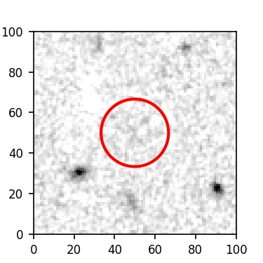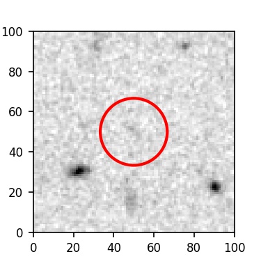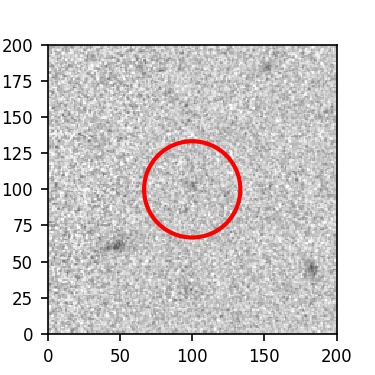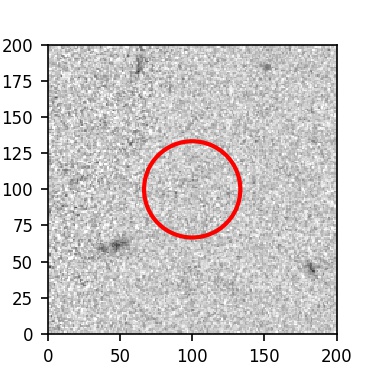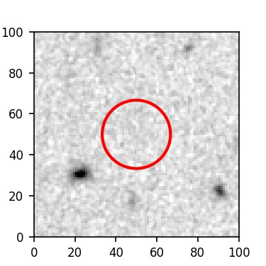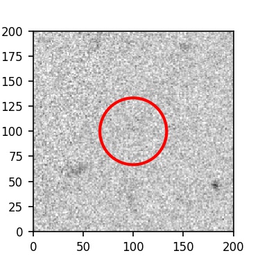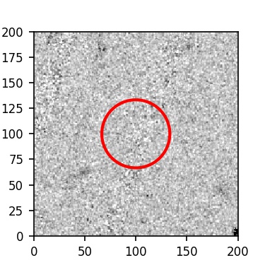 The red circle in the various panels is 1" in radius. The images are 6"x6".