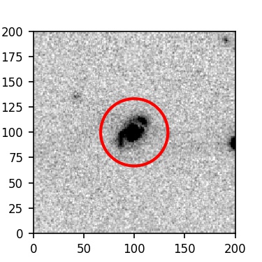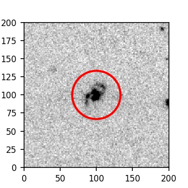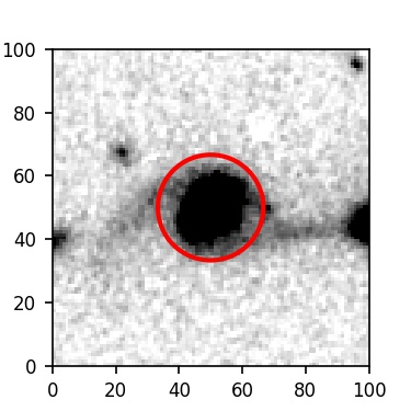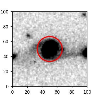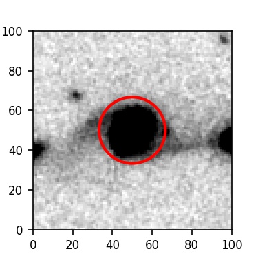 The red circle in the various panels is 1" in radius. The images are 6"x6".