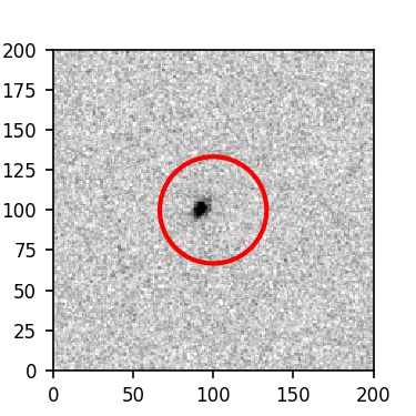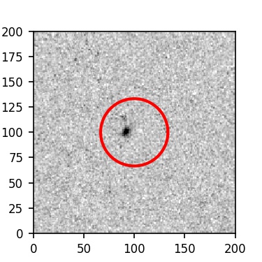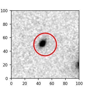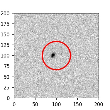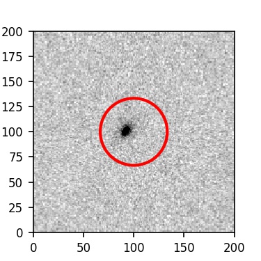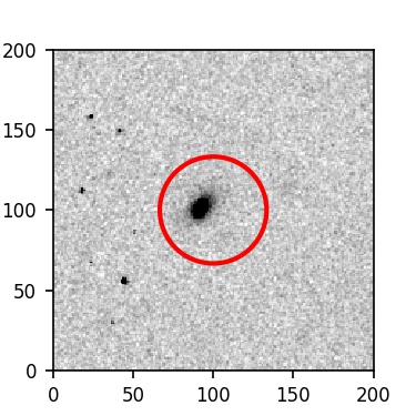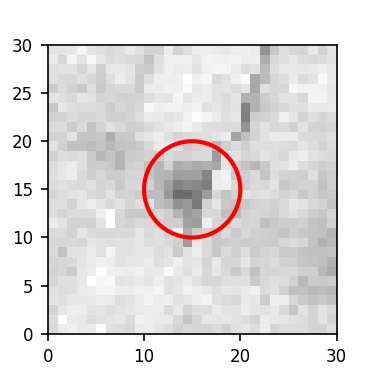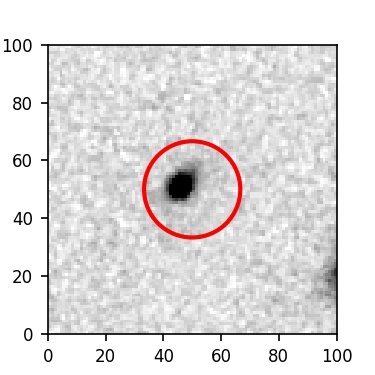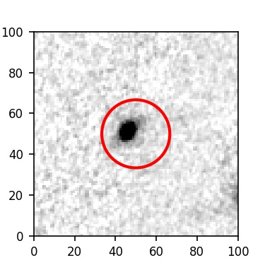 The red circle in the various panels is 1" in radius. The images are 6"x6".