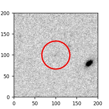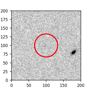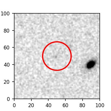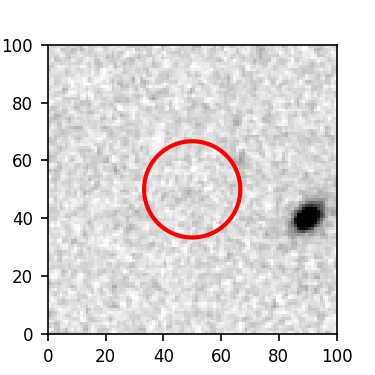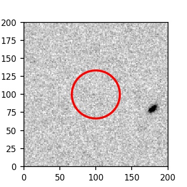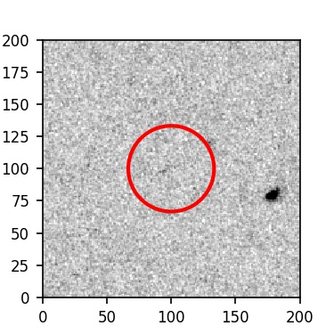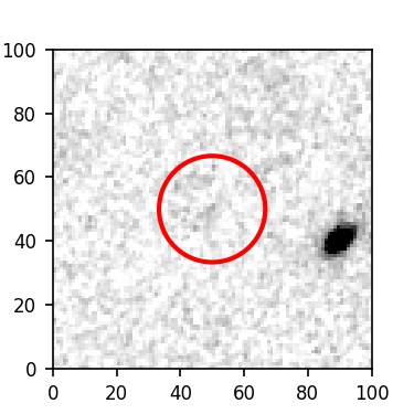 The red circle in the various panels is 1" in radius. The images are 6"x6".