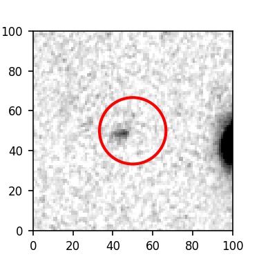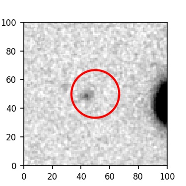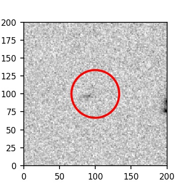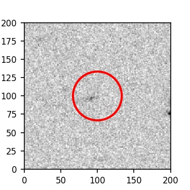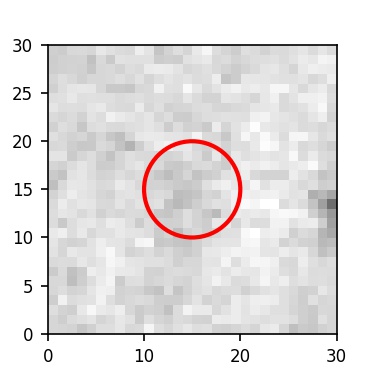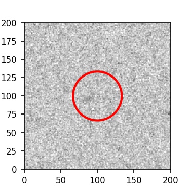 The red circle in the various panels is 1" in radius. The images are 6"x6".
