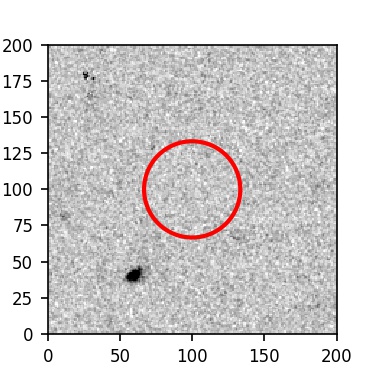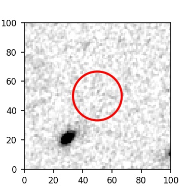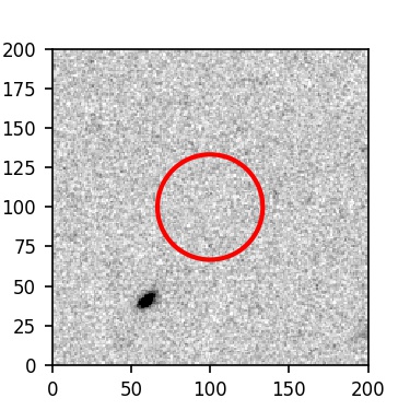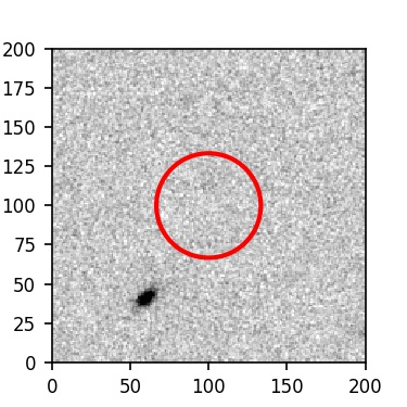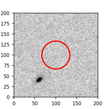 The red circle in the various panels is 1" in radius. The images are 6"x6".