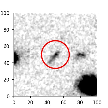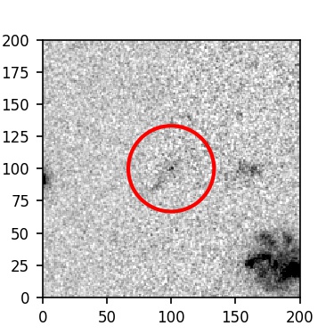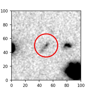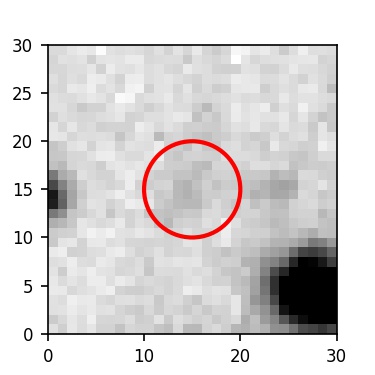 The red circle in the various panels is 1" in radius. The images are 6"x6".