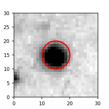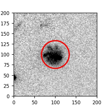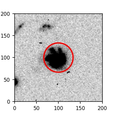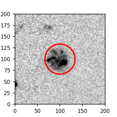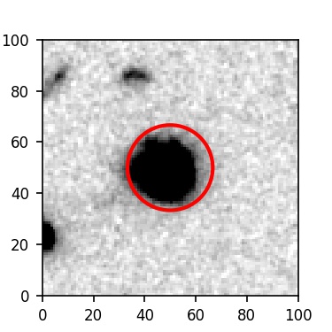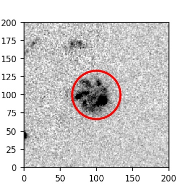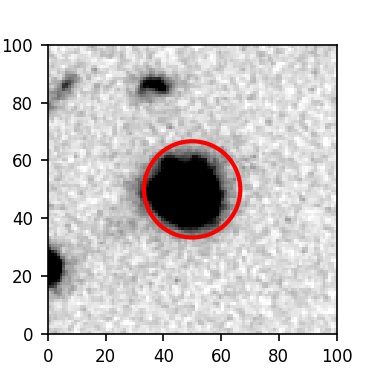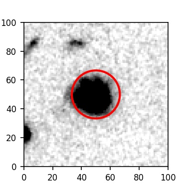 The red circle in the various panels is 1" in radius. The images are 6"x6".