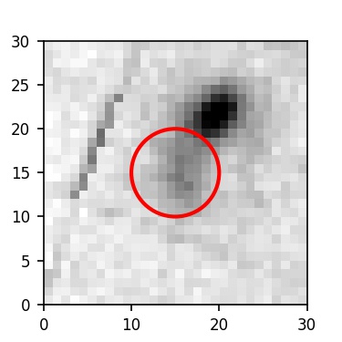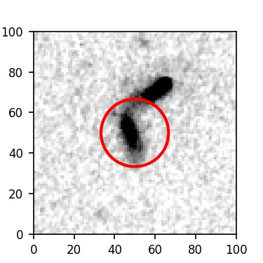 The red circle in the various panels is 1" in radius. The images are 6"x6".