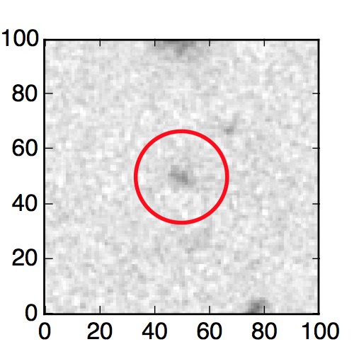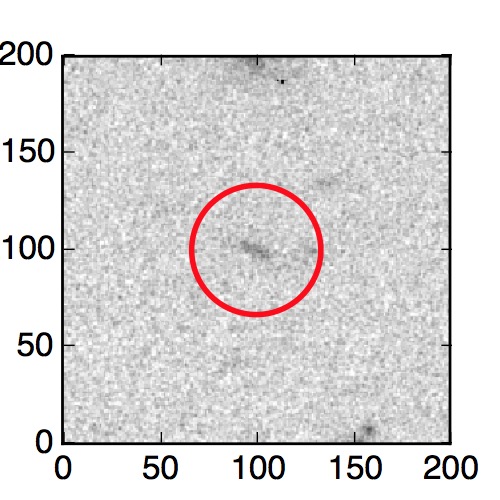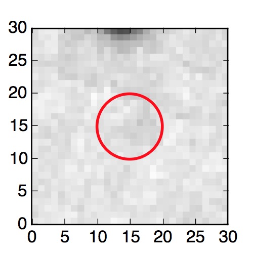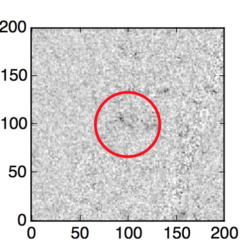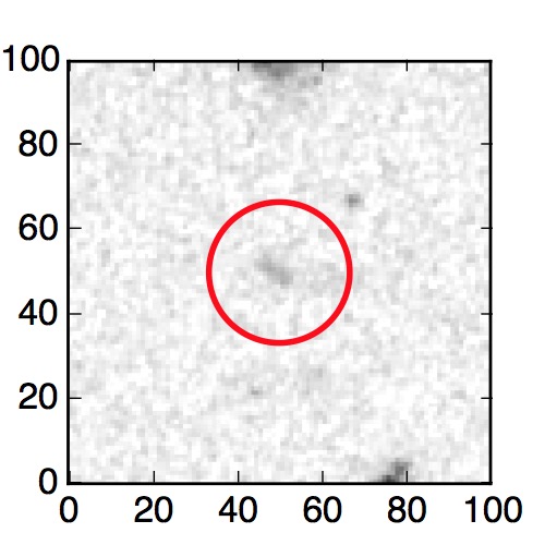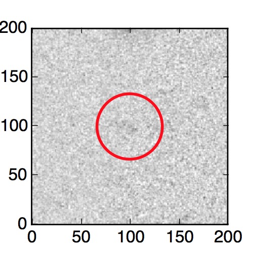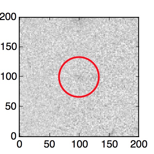The red circle in the various panels is 1" in radius. The images are 6"x6".
