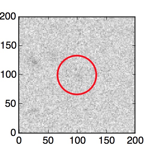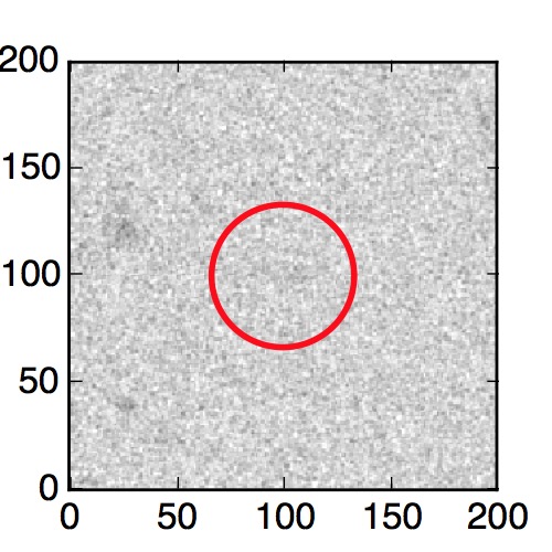 The red circle in the various panels is 1" in radius. The images are 6"x6".