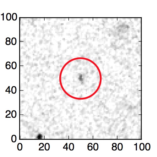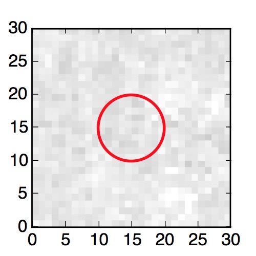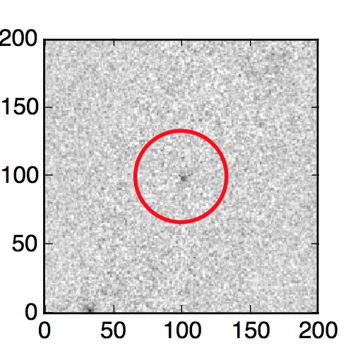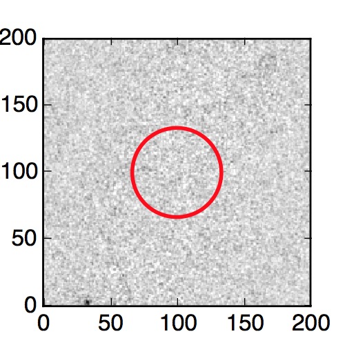 The red circle in the various panels is 1" in radius. The images are 6"x6".