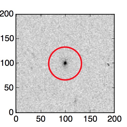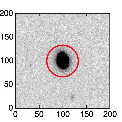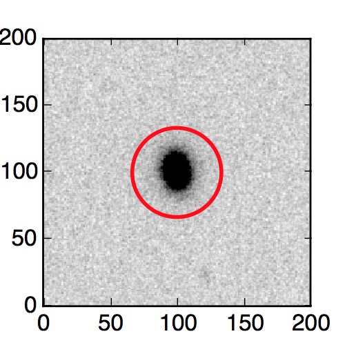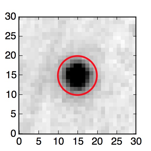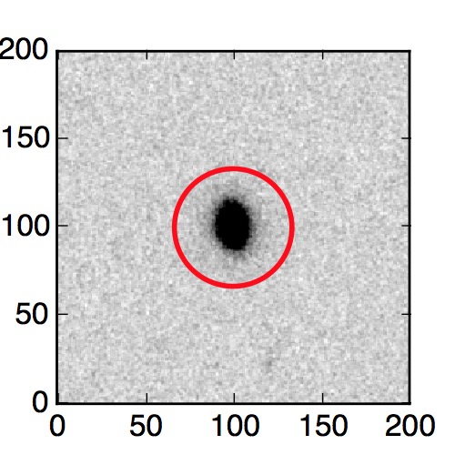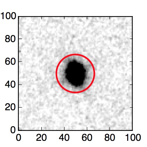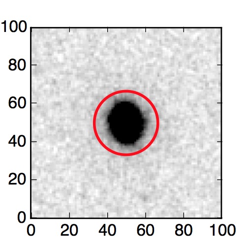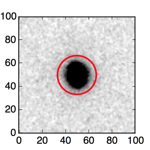 The red circle in the various panels is 1" in radius. The images are 6"x6".