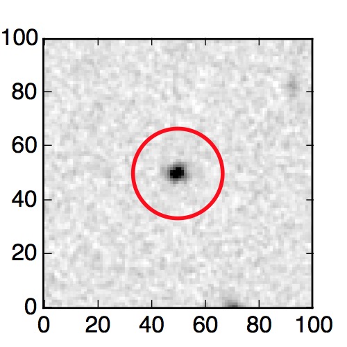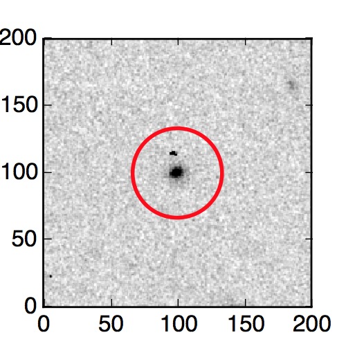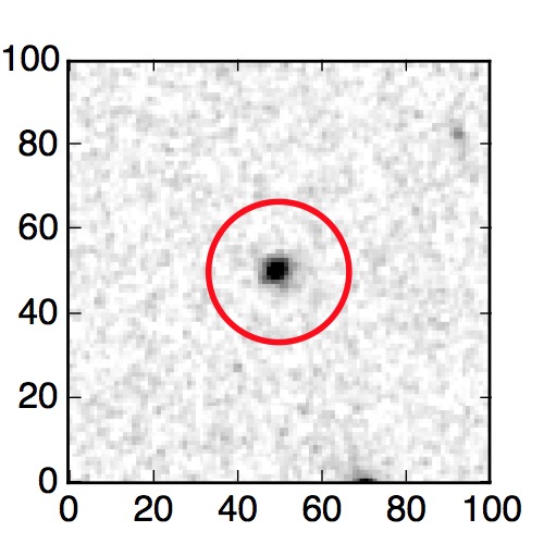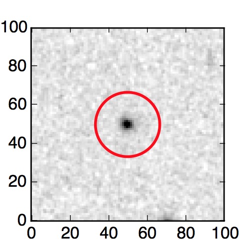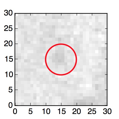 The red circle in the various panels is 1" in radius. The images are 6"x6".