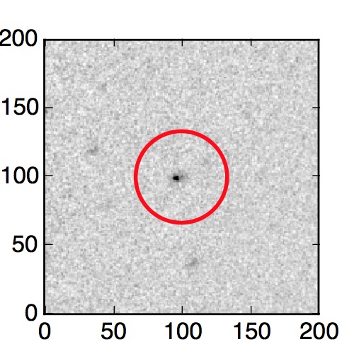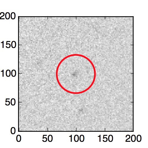 The red circle in the various panels is 1" in radius. The images are 6"x6".
