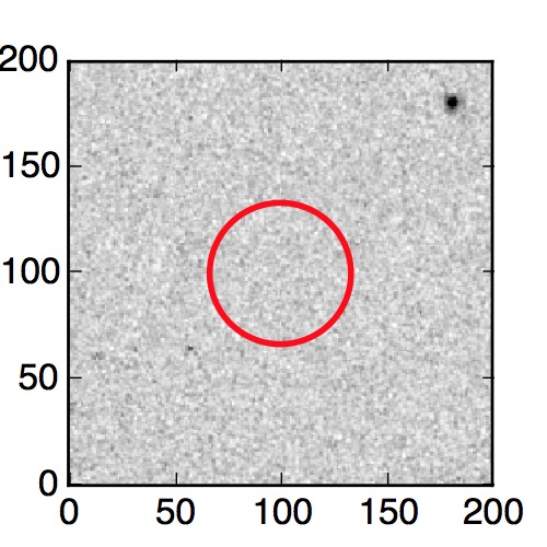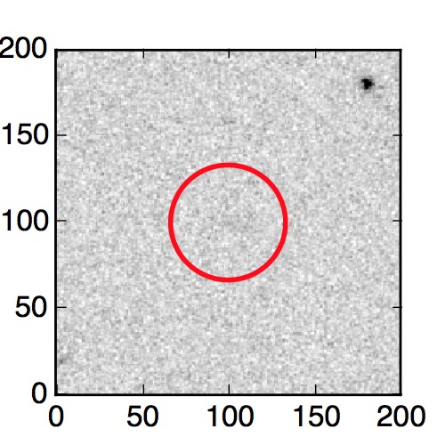 The red circle in the various panels is 1" in radius. The images are 6"x6".