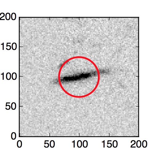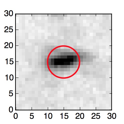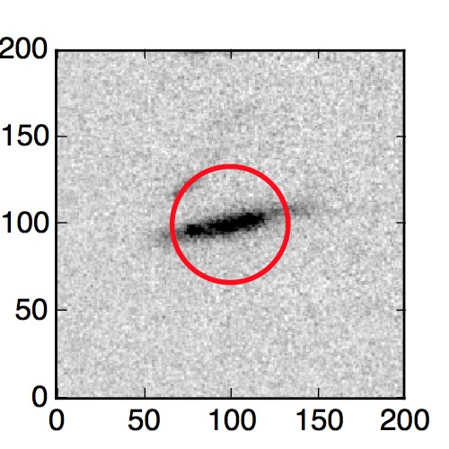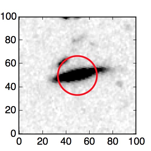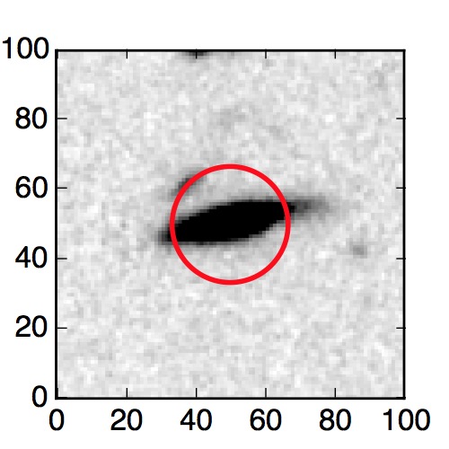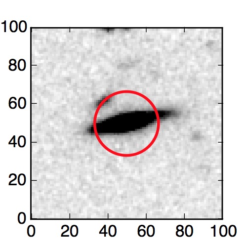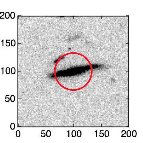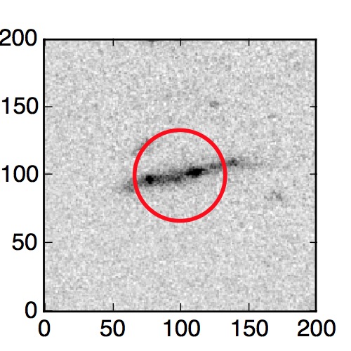 The red circle in the various panels is 1" in radius. The images are 6"x6".