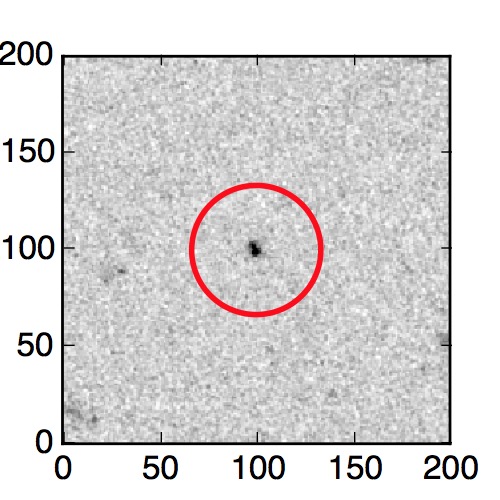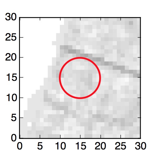 The red circle in the various panels is 1" in radius. The images are 6"x6".