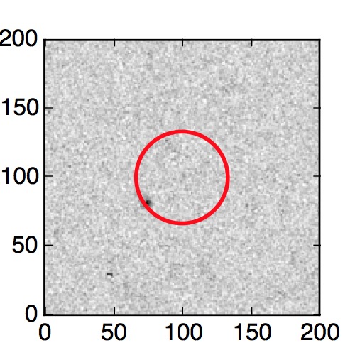 The red circle in the various panels is 1" in radius. The images are 6"x6".