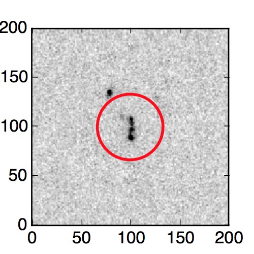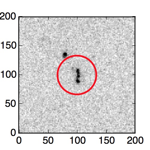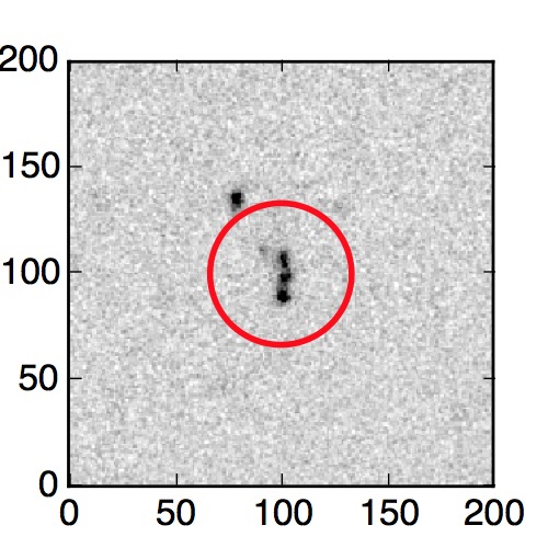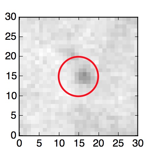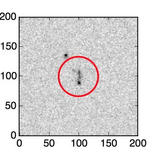 The red circle in the various panels is 1" in radius. The images are 6"x6".