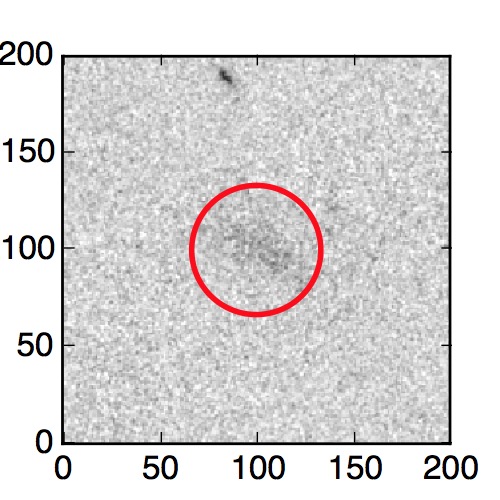 The red circle in the various panels is 1" in radius. The images are 6"x6".