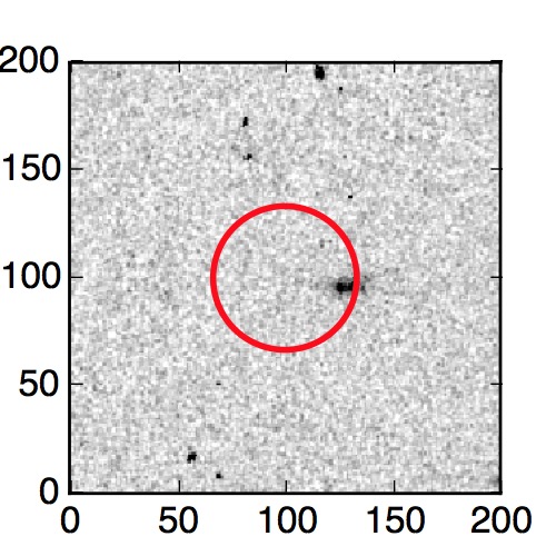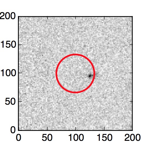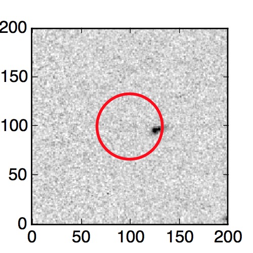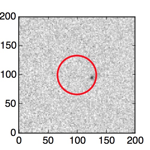 The red circle in the various panels is 1" in radius. The images are 6"x6".