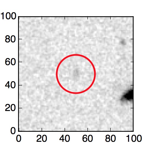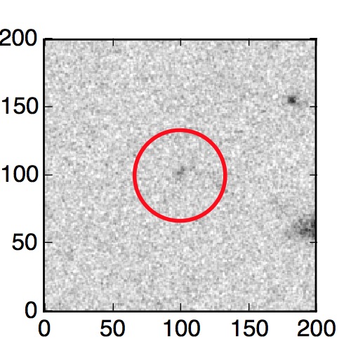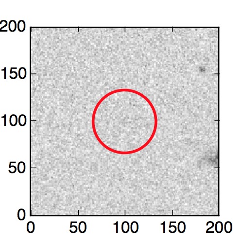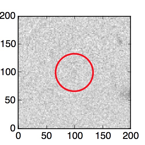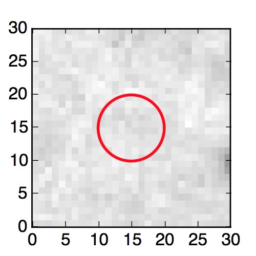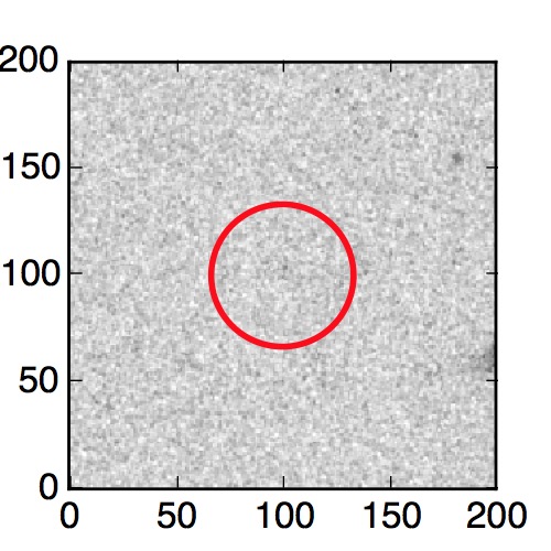 The red circle in the various panels is 1" in radius. The images are 6"x6".
