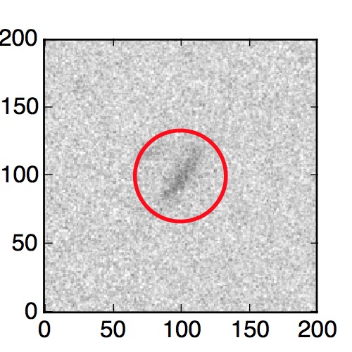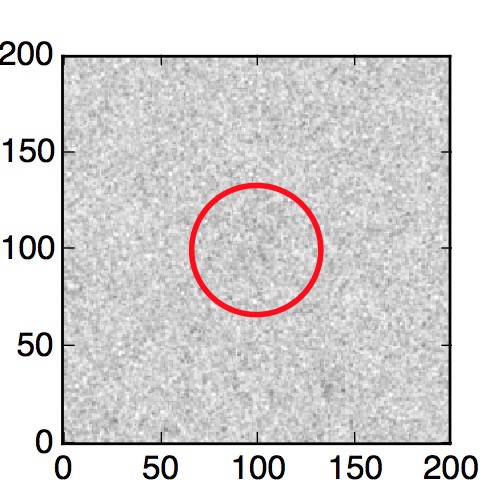 The red circle in the various panels is 1" in radius. The images are 6"x6".