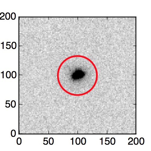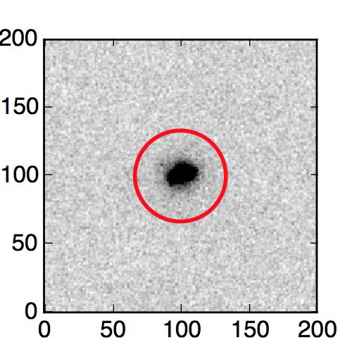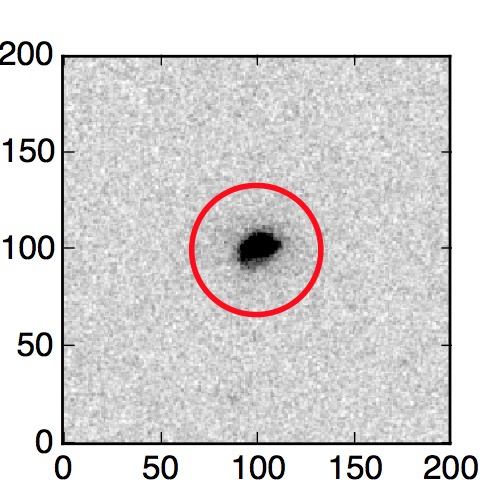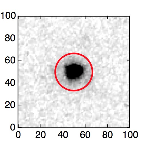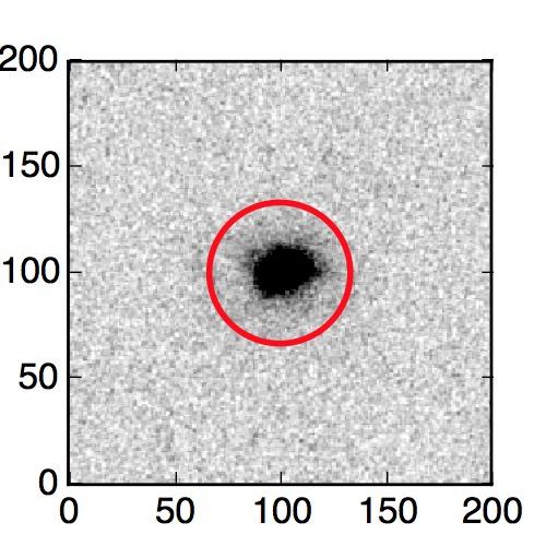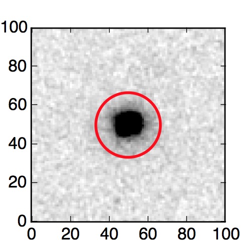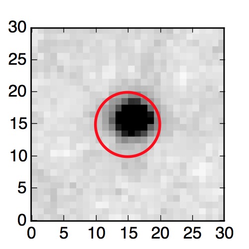 The red circle in the various panels is 1" in radius. The images are 6"x6".