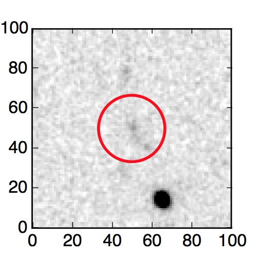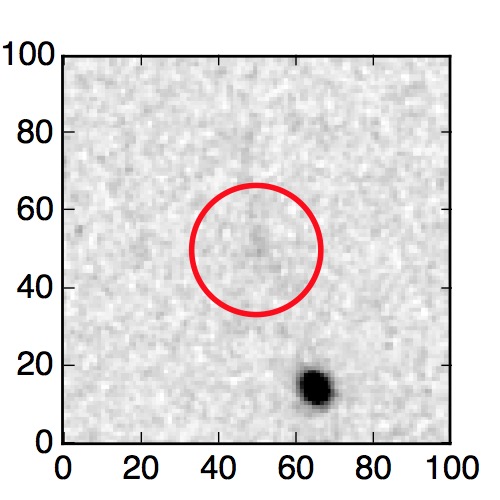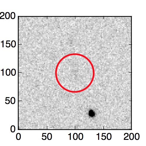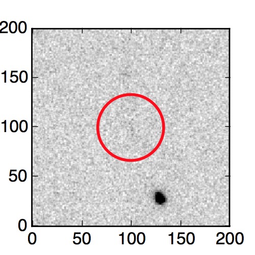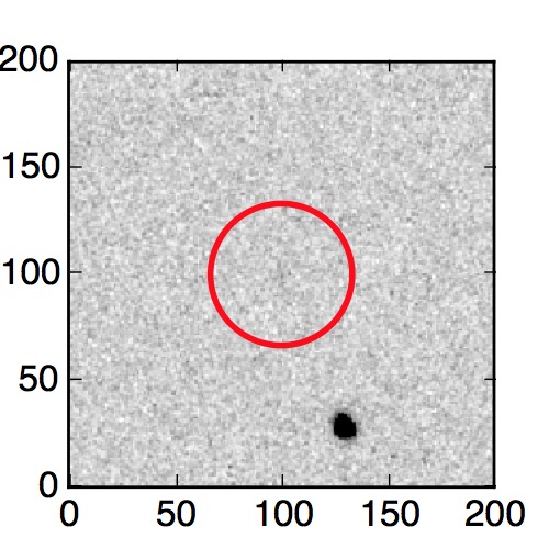 The red circle in the various panels is 1" in radius. The images are 6"x6".