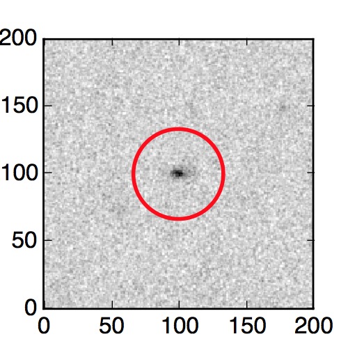The red circle in the various panels is 1" in radius. The images are 6"x6".