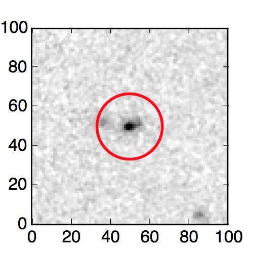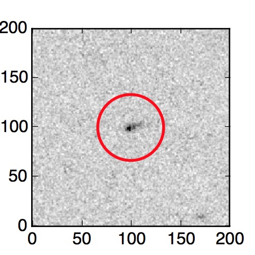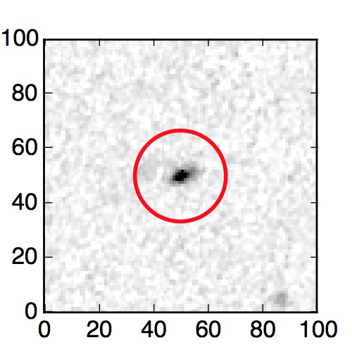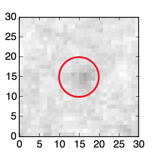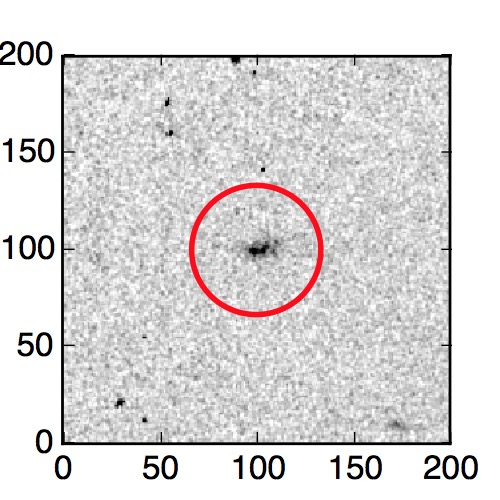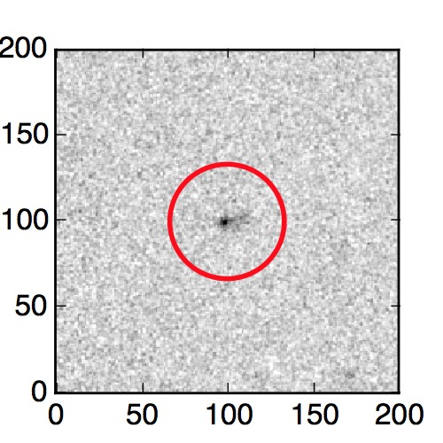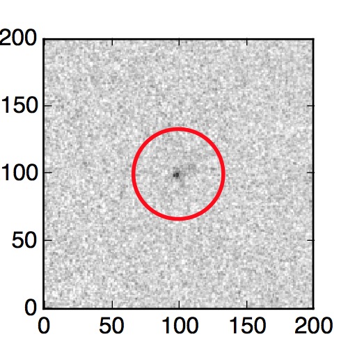 The red circle in the various panels is 1" in radius. The images are 6"x6".