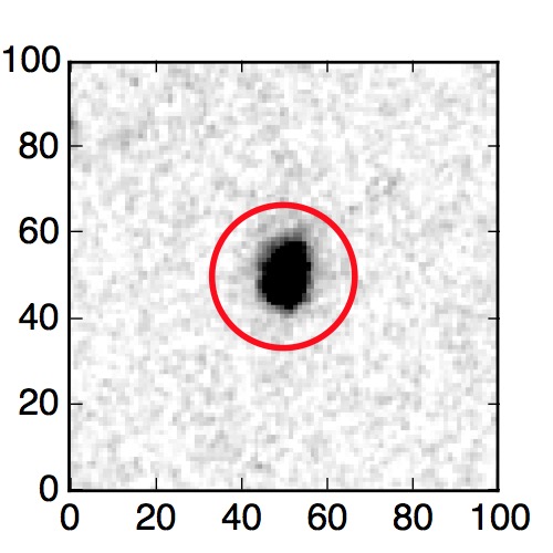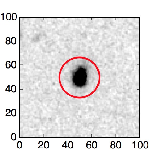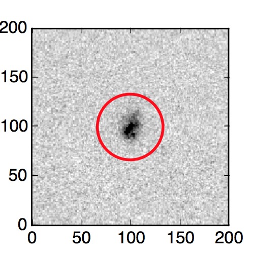 The red circle in the various panels is 1" in radius. The images are 6"x6".