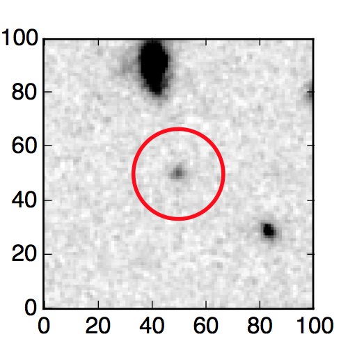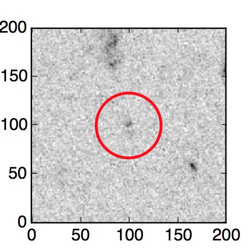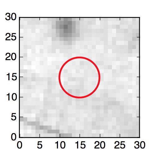 The red circle in the various panels is 1" in radius. The images are 6"x6".