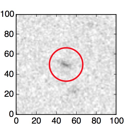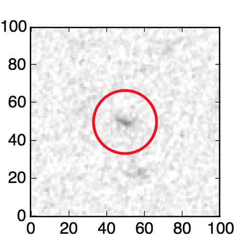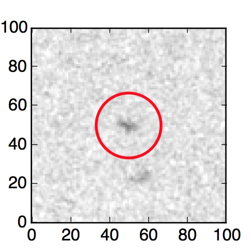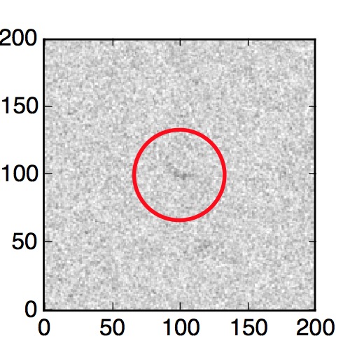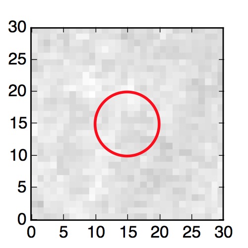 The red circle in the various panels is 1" in radius. The images are 6"x6".