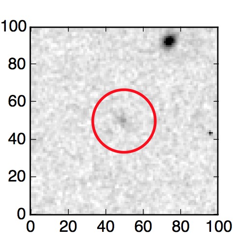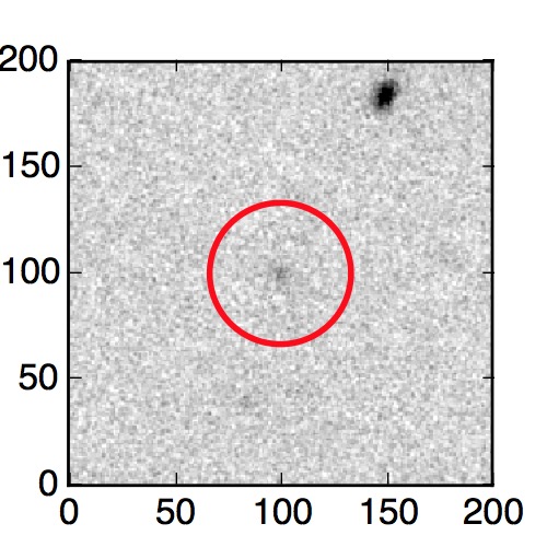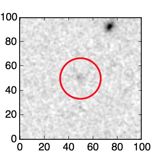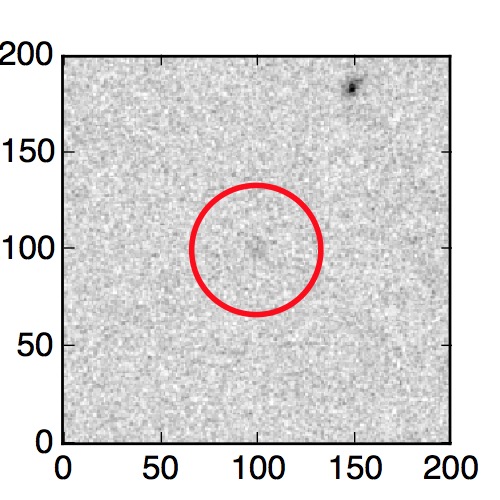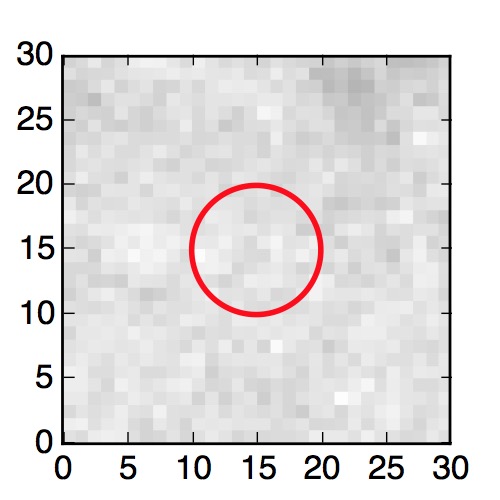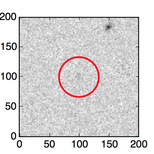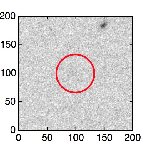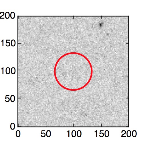 The red circle in the various panels is 1" in radius. The images are 6"x6".