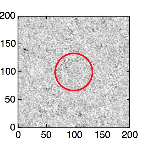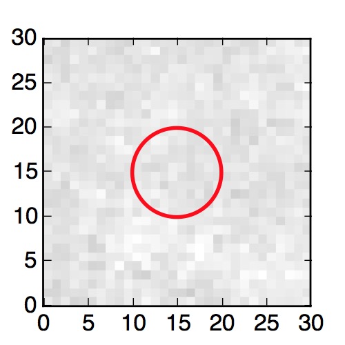 The red circle in the various panels is 1" in radius. The images are 6"x6".