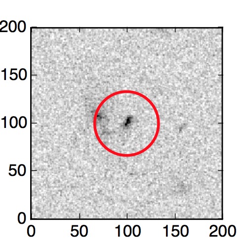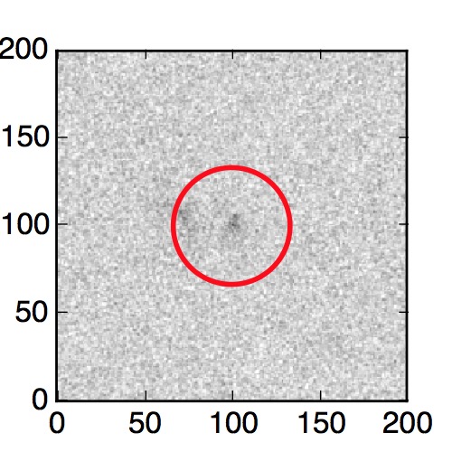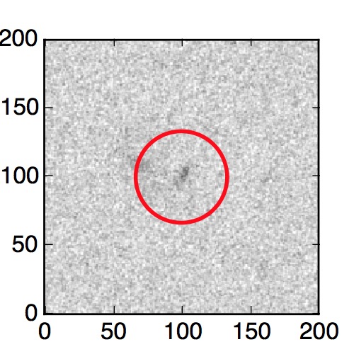 The red circle in the various panels is 1" in radius. The images are 6"x6".
