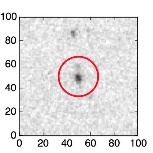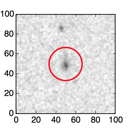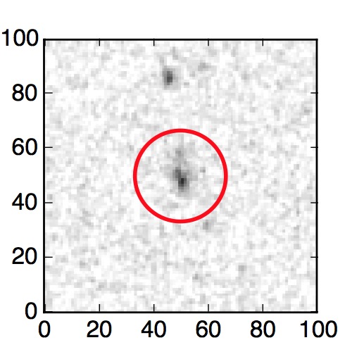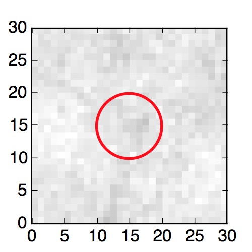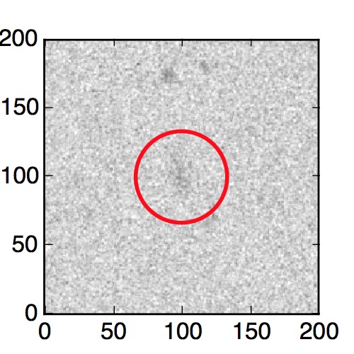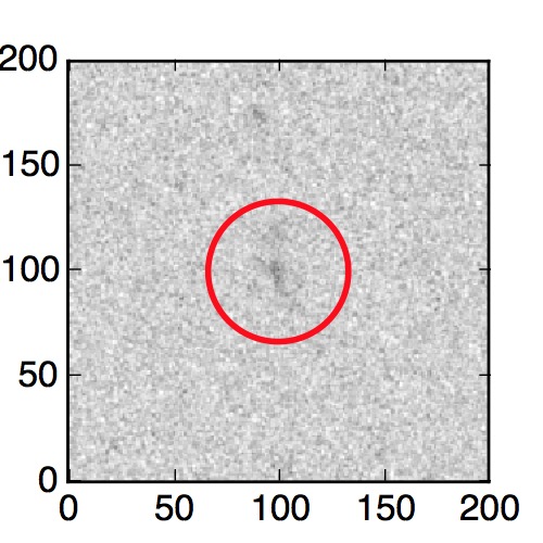 The red circle in the various panels is 1" in radius. The images are 6"x6".