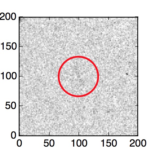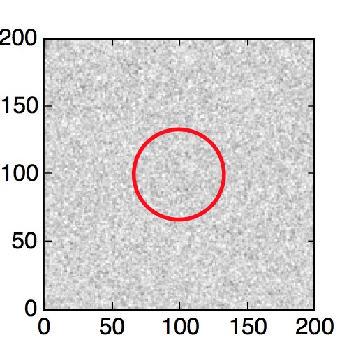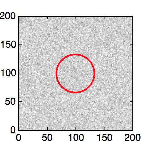 The red circle in the various panels is 1" in radius. The images are 6"x6".