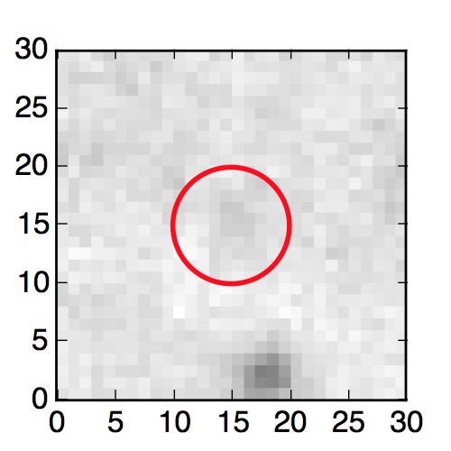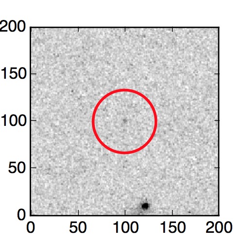 The red circle in the various panels is 1" in radius. The images are 6"x6".