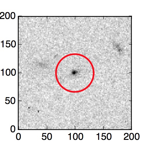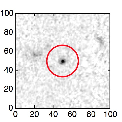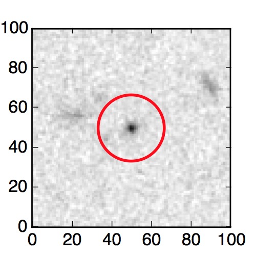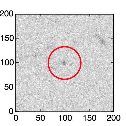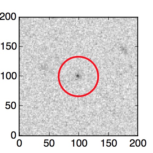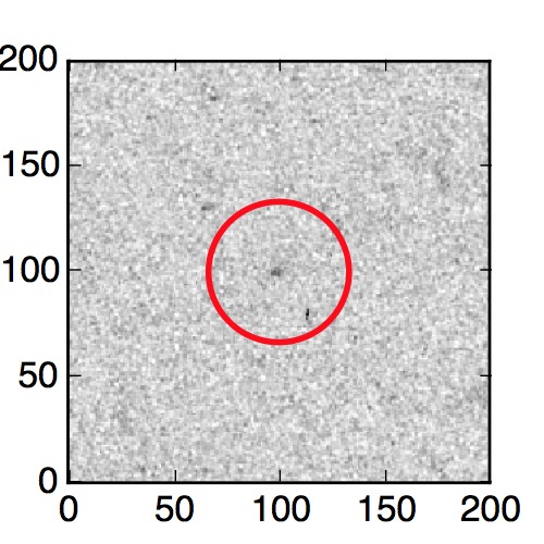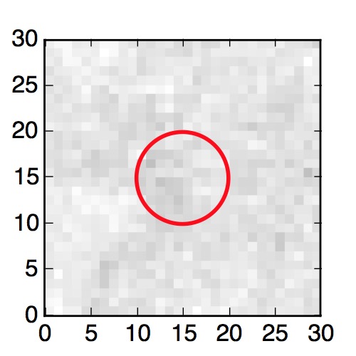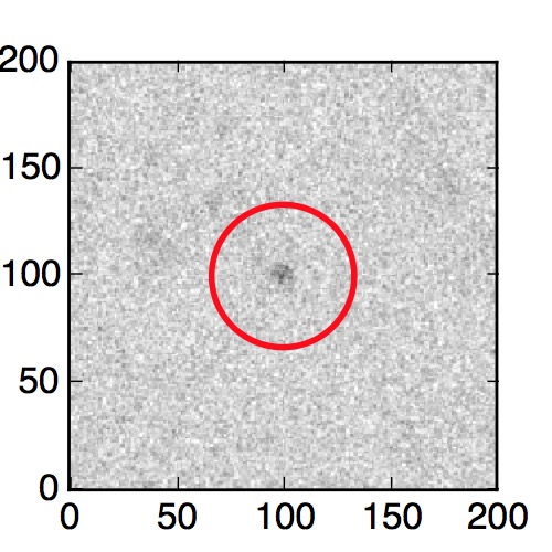 The red circle in the various panels is 1" in radius. The images are 6"x6".