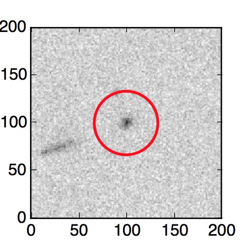 The red circle in the various panels is 1" in radius. The images are 6"x6".