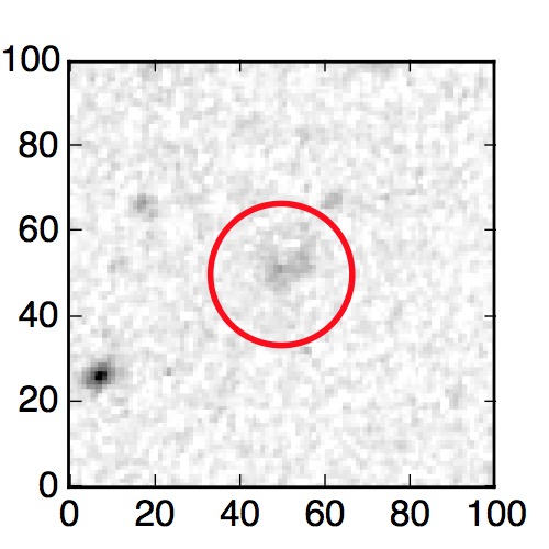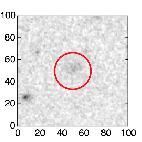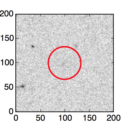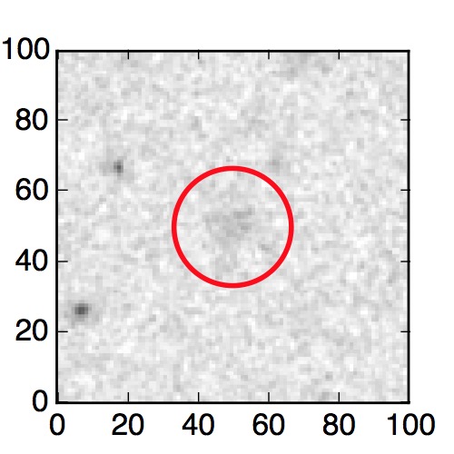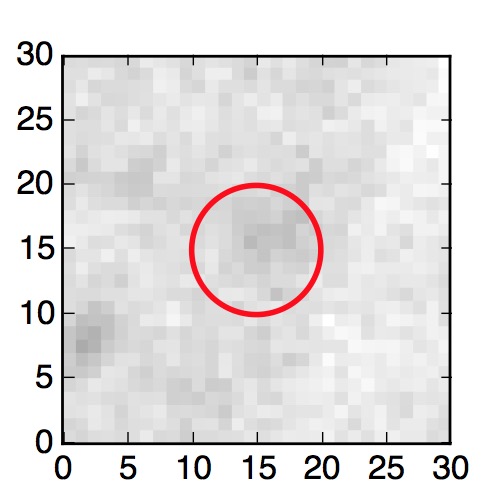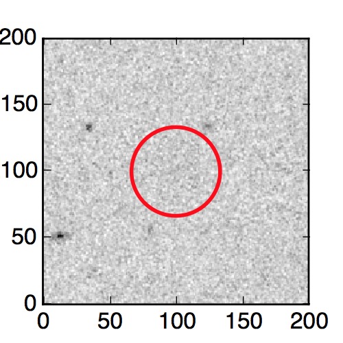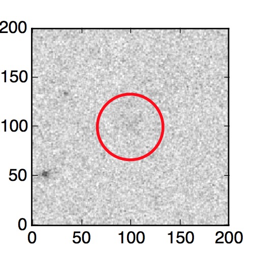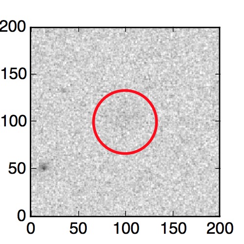 The red circle in the various panels is 1" in radius. The images are 6"x6".