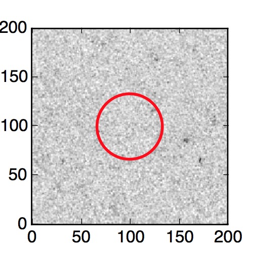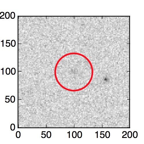 The red circle in the various panels is 1" in radius. The images are 6"x6".