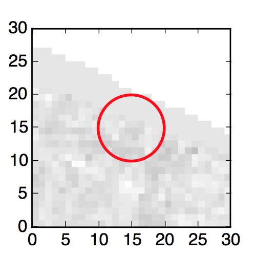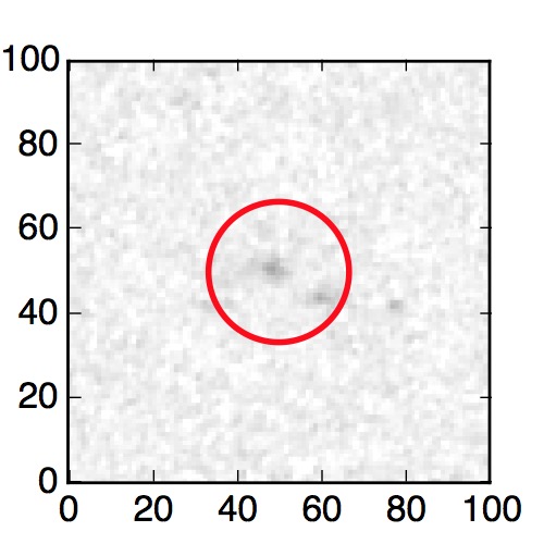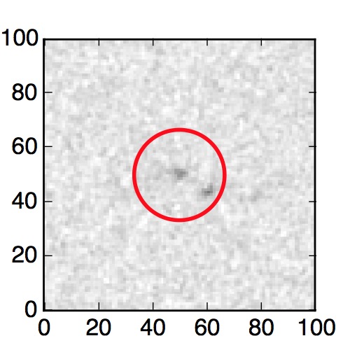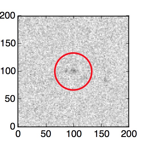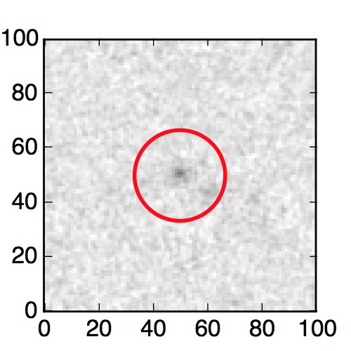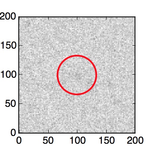 The red circle in the various panels is 1" in radius. The images are 6"x6".