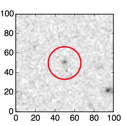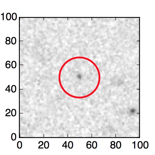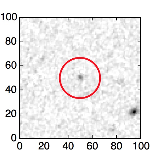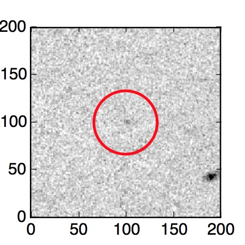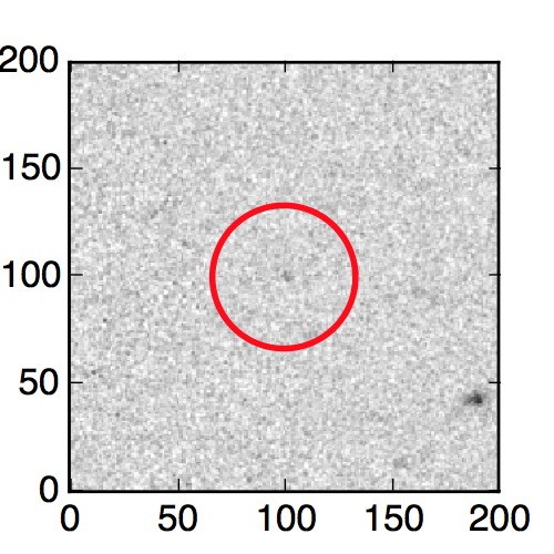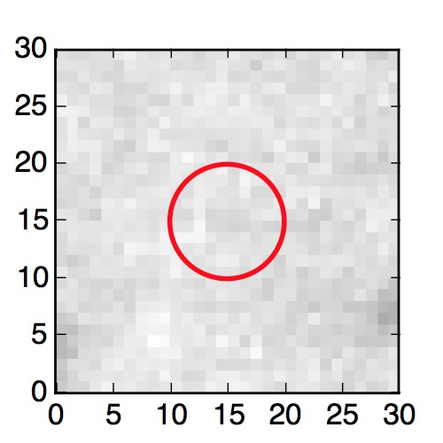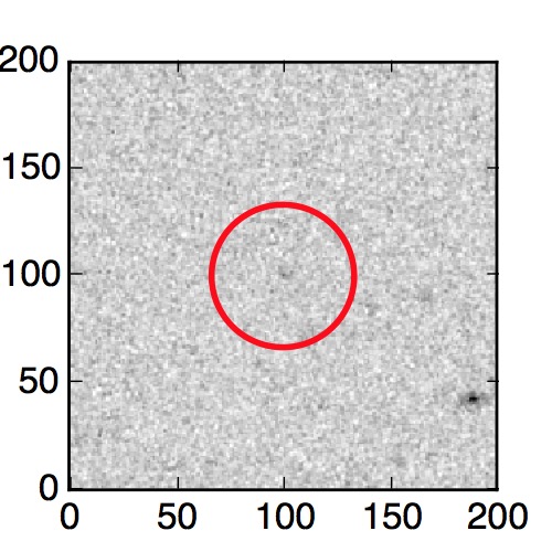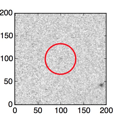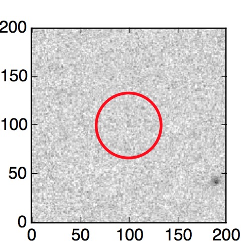 The red circle in the various panels is 1" in radius. The images are 6"x6".