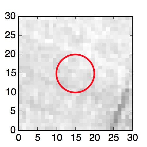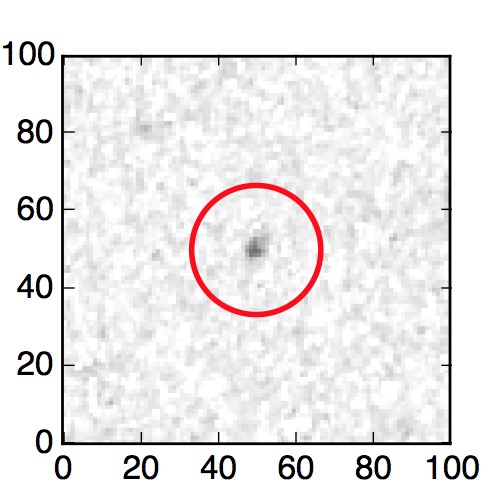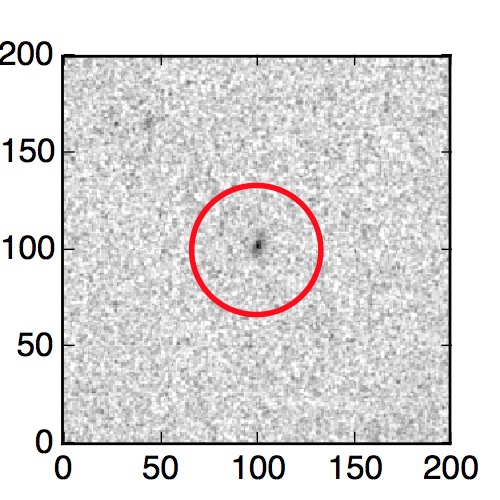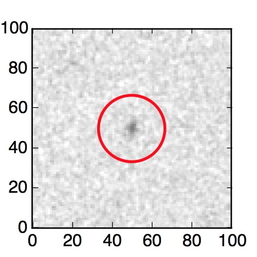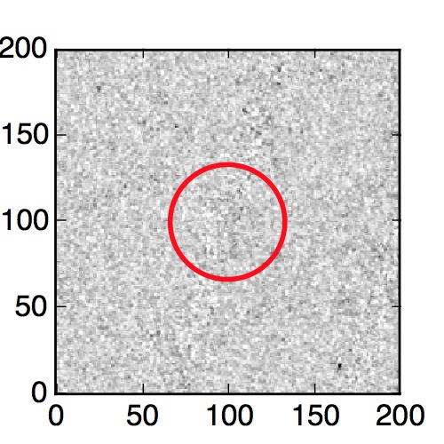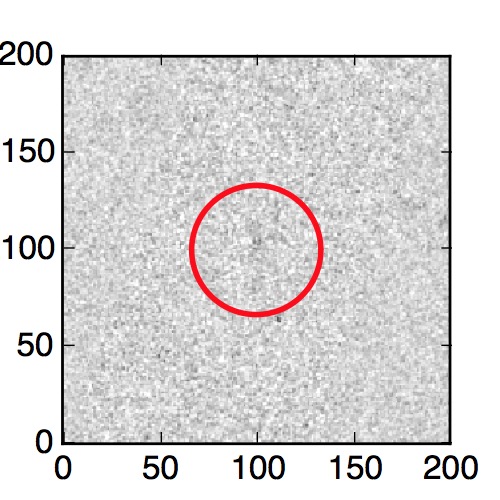 The red circle in the various panels is 1" in radius. The images are 6"x6".